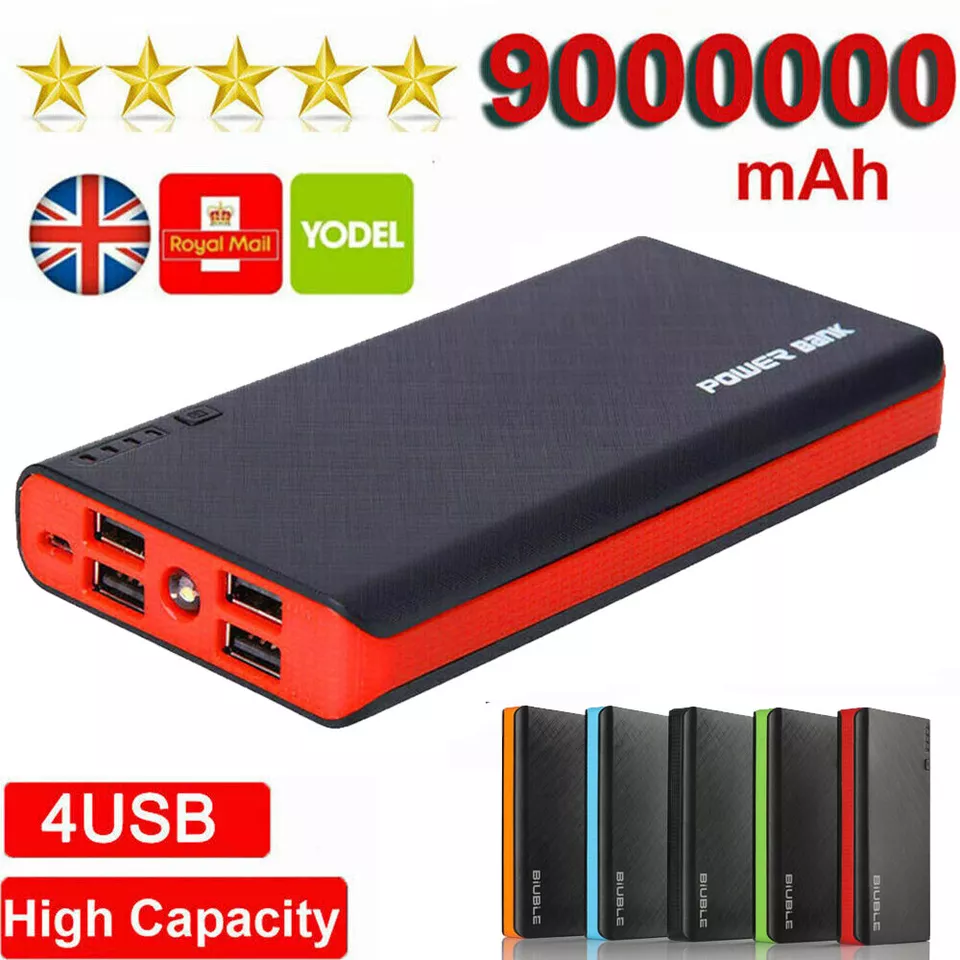 Massive 9000000mAh Power Bank with 4 USB Outputs, LED Indicator & Fast Charging for Phones and Gadgets