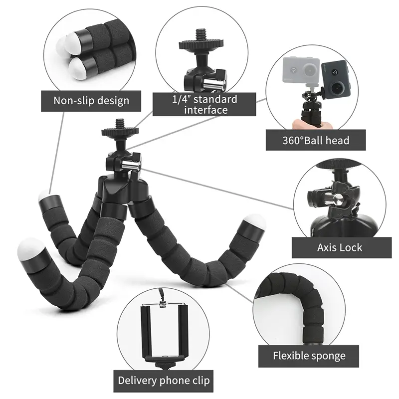 Non-Slip Desktop Tripod Stand – Flexible Sponge Mobile Phone Holder for Stable Video Shooting