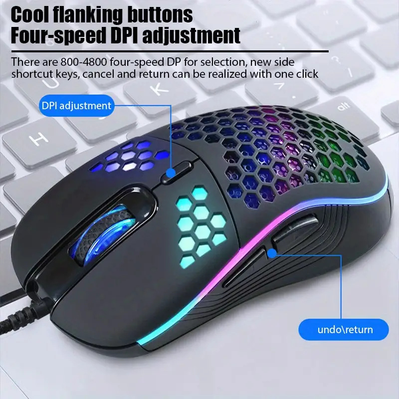 Feature: Adjustable DPI, Ergonomic, Grip, LED Lighting, On/Off Switch, Scroll Wheel, Thumb Button, Backlit, Nonslip, Round Key, Motion Sensing, Integrated Stand, Hotkeys & Media Keys