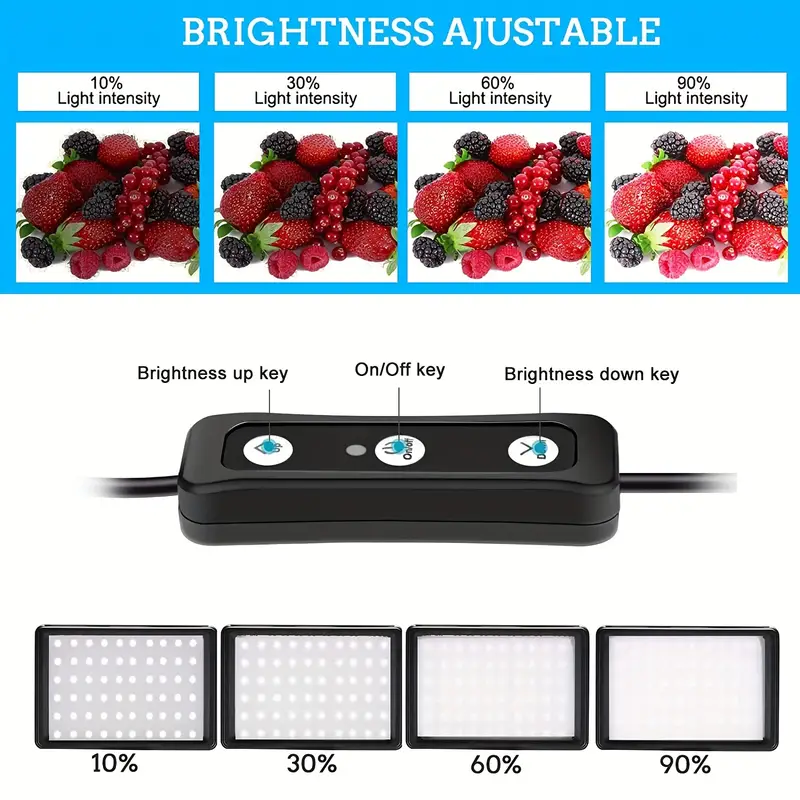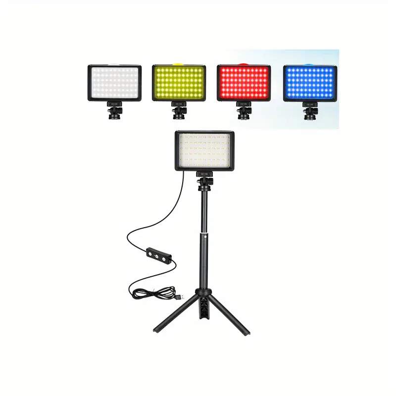| Compact LED Video Light for Studios and Gaming – Adjustable Brightness with USB Power and Mini Tripod |
