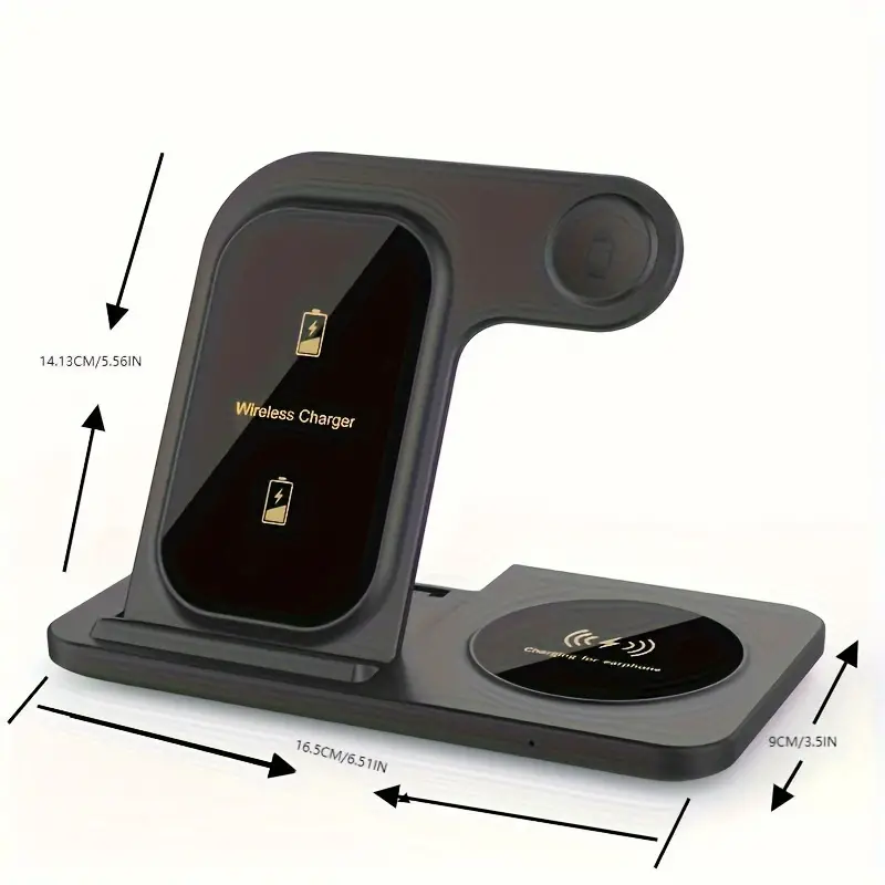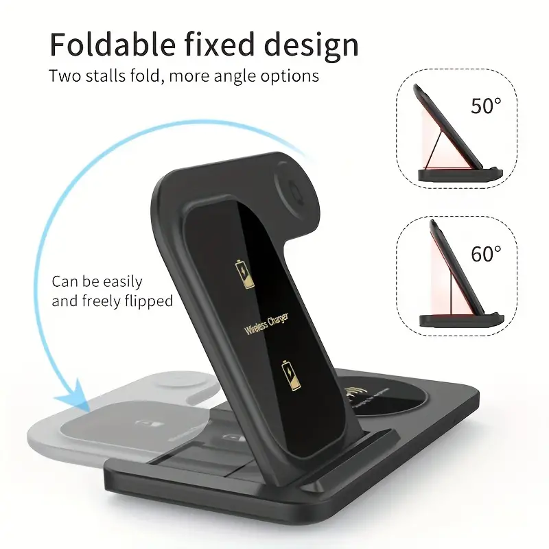 3-in-1 Foldable Fast Charging Station – Wireless Dock for iPhone, Apple Watch, and AirPods Pro, USB-Powered