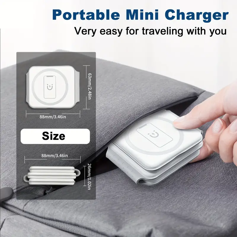 | Portable 3-in-1 Magnetic Wireless Charging Dock – Fast 15W Charger for iPhone, Apple Watch & AirPods, Compact Design with Adapter Cable |