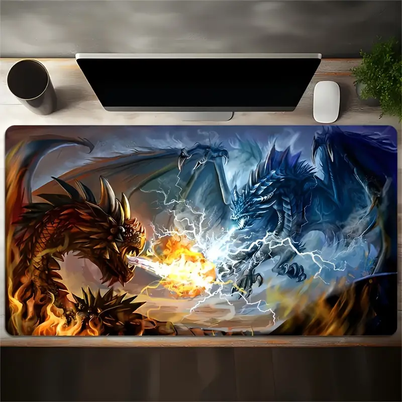 Extra-Large Dual Dragon Battle Mouse Pad – Non-Slip Rubber Base, Stitched Edges for Gaming and Office