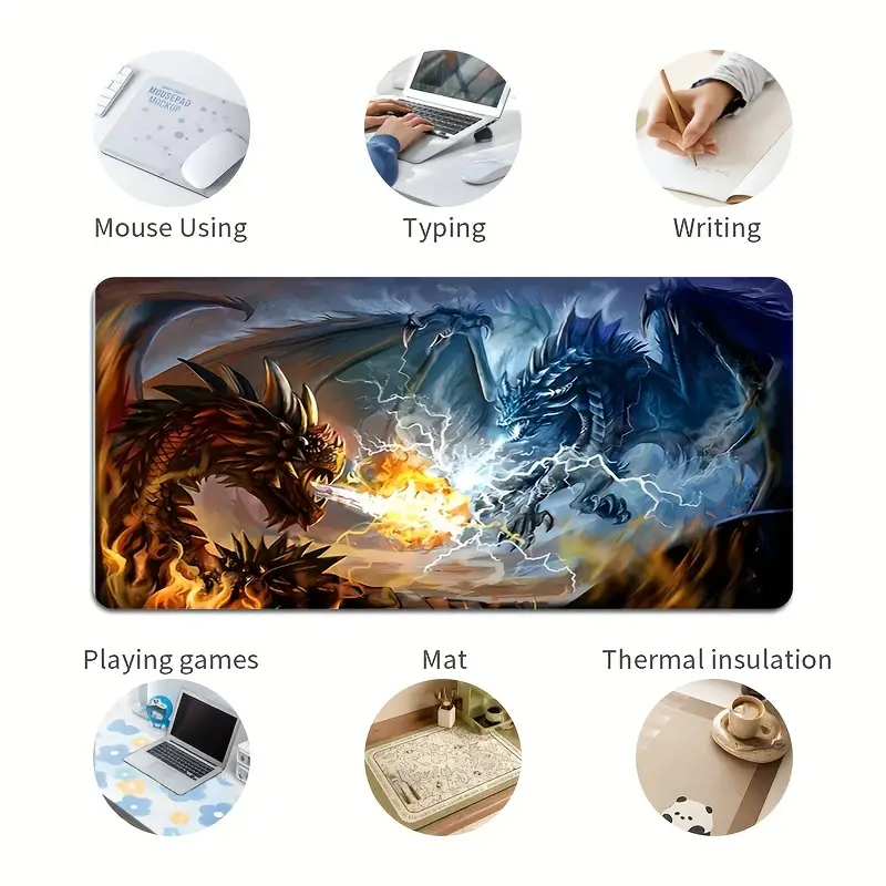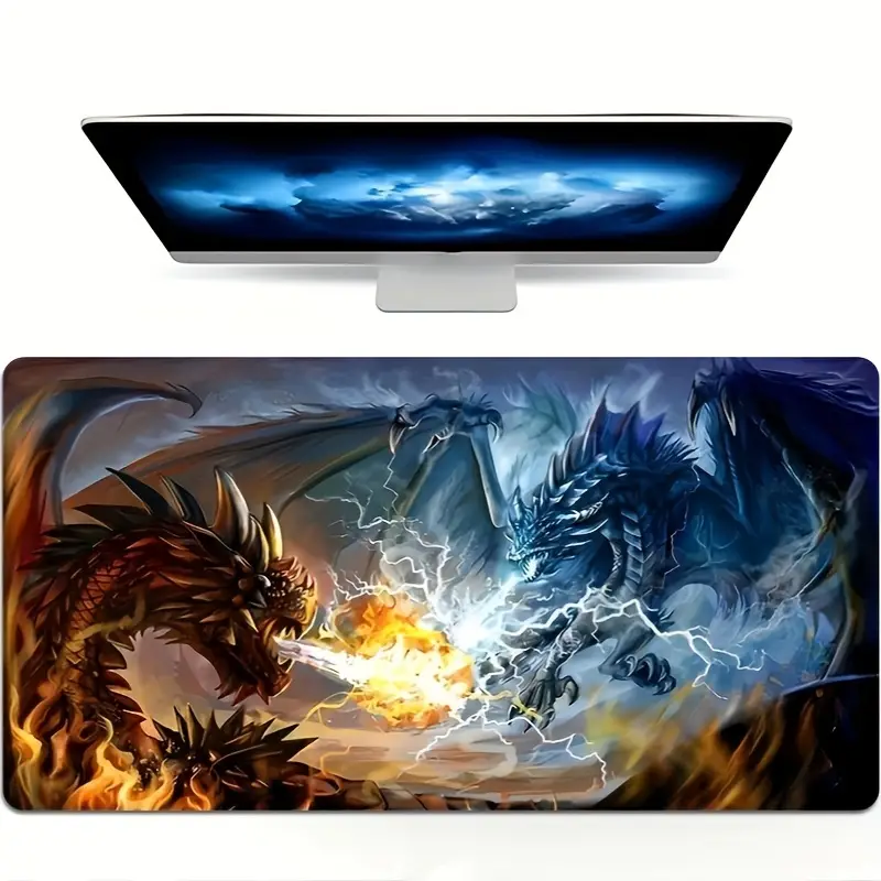 Oversized Dragon Battle Mouse Pad – Non-Slip Rubber, Stitched Edges, Ideal for Gaming and Professional Use