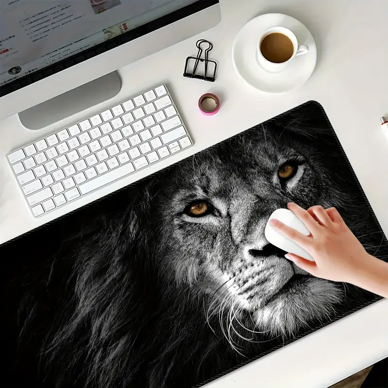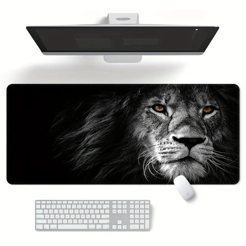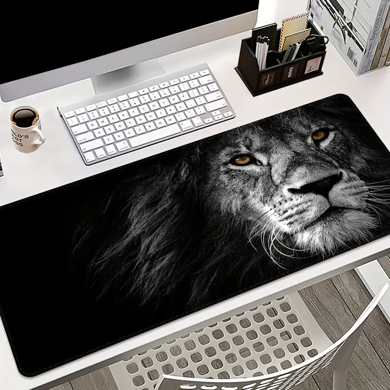 Extra Large Gaming Mouse Pad – Thickened Anti-Slip Rubber Mat with Lion Print, Perfect for Desktop and Table Use