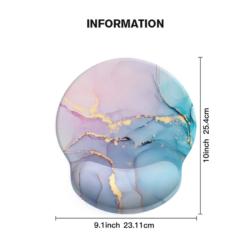 Gradient Marble Wrist Rest Mouse Pad – Round Pink and Blue Design with Non-Slip Rubber Base
