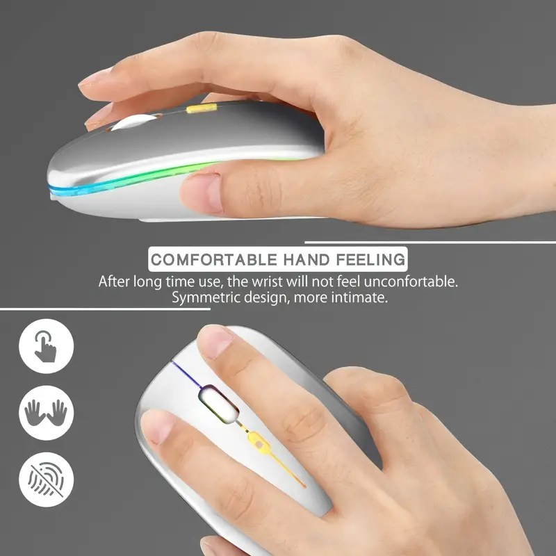 Advanced Silent Wireless Mouse - Rechargeable, 2.4G, LED Color Light, BT5.2, Compatible with PC, Computer, Laptop, Windows, and iOS Systems - Ergonomic Design for Comfortable Use