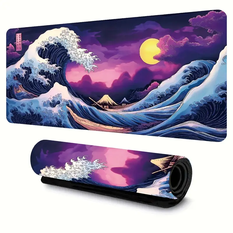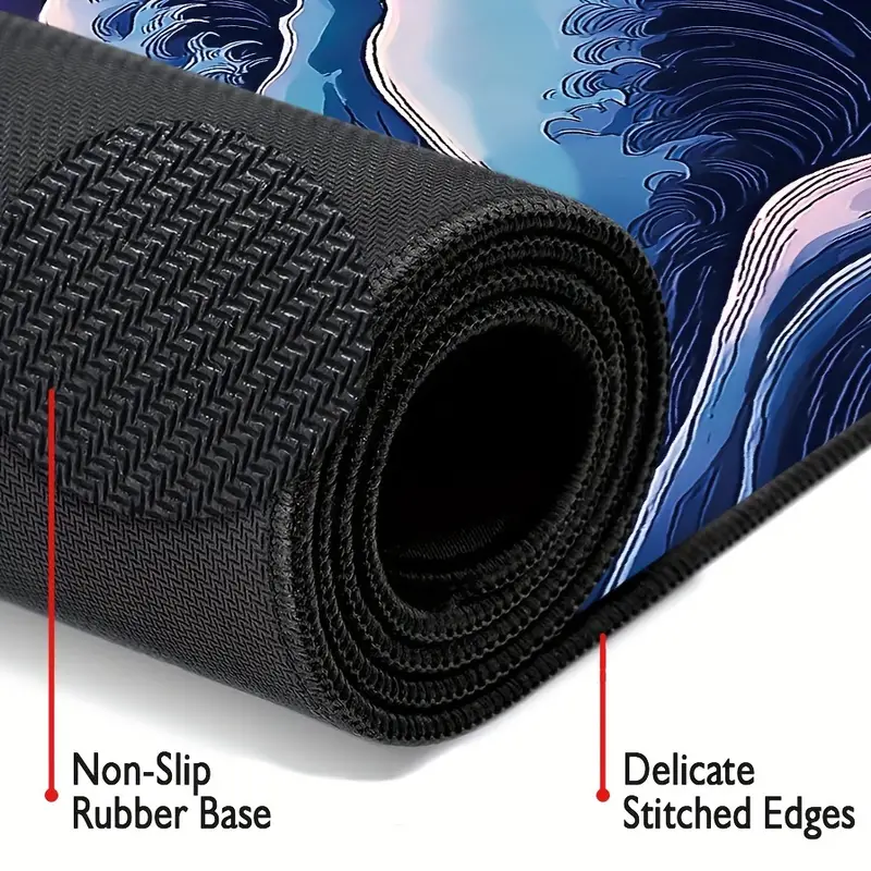Japanese Wave Art Gaming Mouse Pad – Extra-Large Non-Slip Desk Mat for Office and Computer Use
