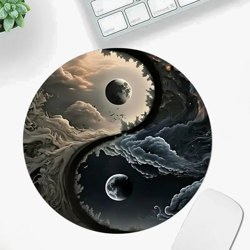 Celestial Moon Design Round Mouse Pad – 20.07 cm Non-Slip Mat for Gaming and Office Use
