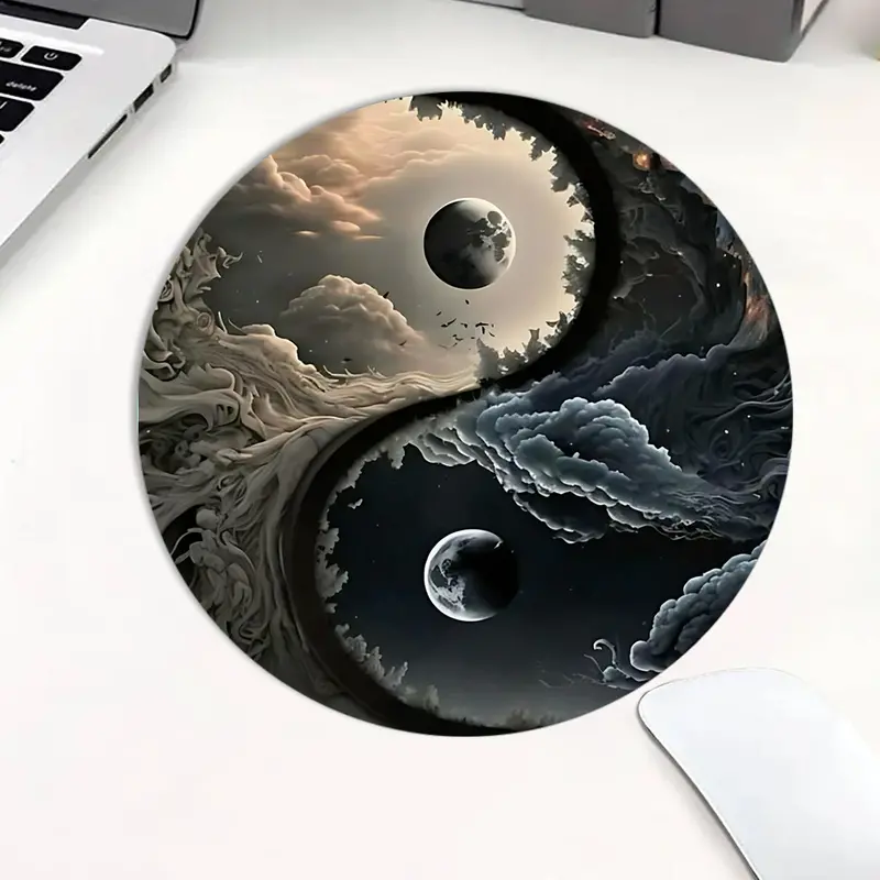 Compact Round Mouse Pad – Yin Yang Moon Design with Non-Slip Base, Great for Office and Gaming