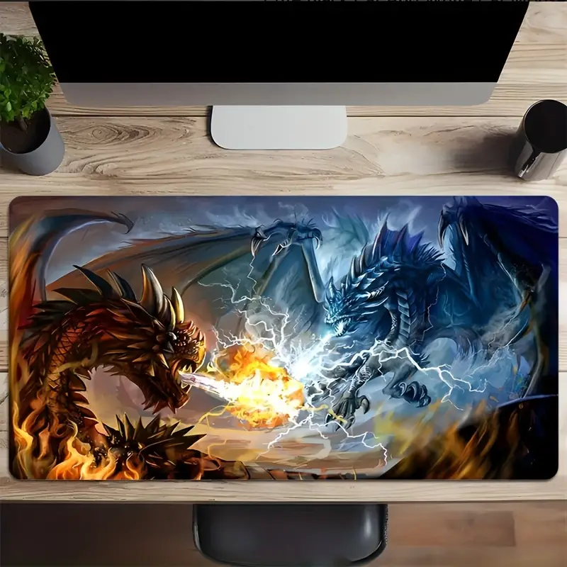 Extra-Large Gaming Mouse Pad – Dual Dragon Design, Non-Slip Rubber with Stitched Edges for Office & Play